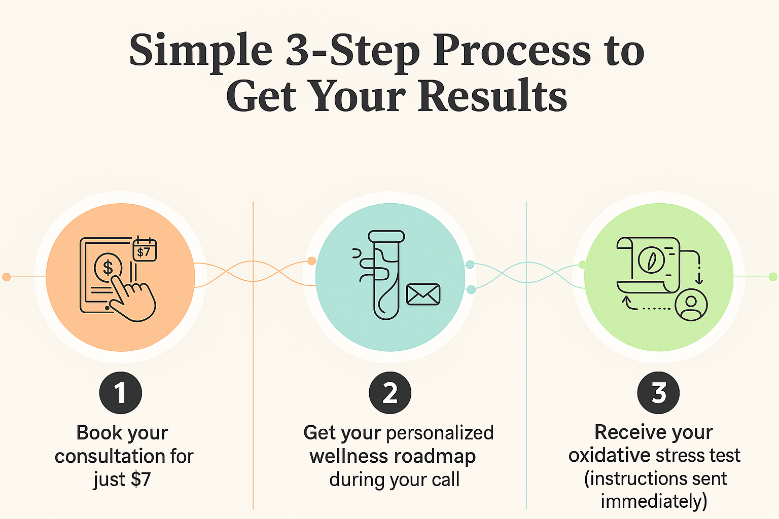 A personalized 30 minute consultation with our certified holistic practitioner, plus a complimentary oxidative stress test to uncover how toxins, diet, and stress are impacting your health.